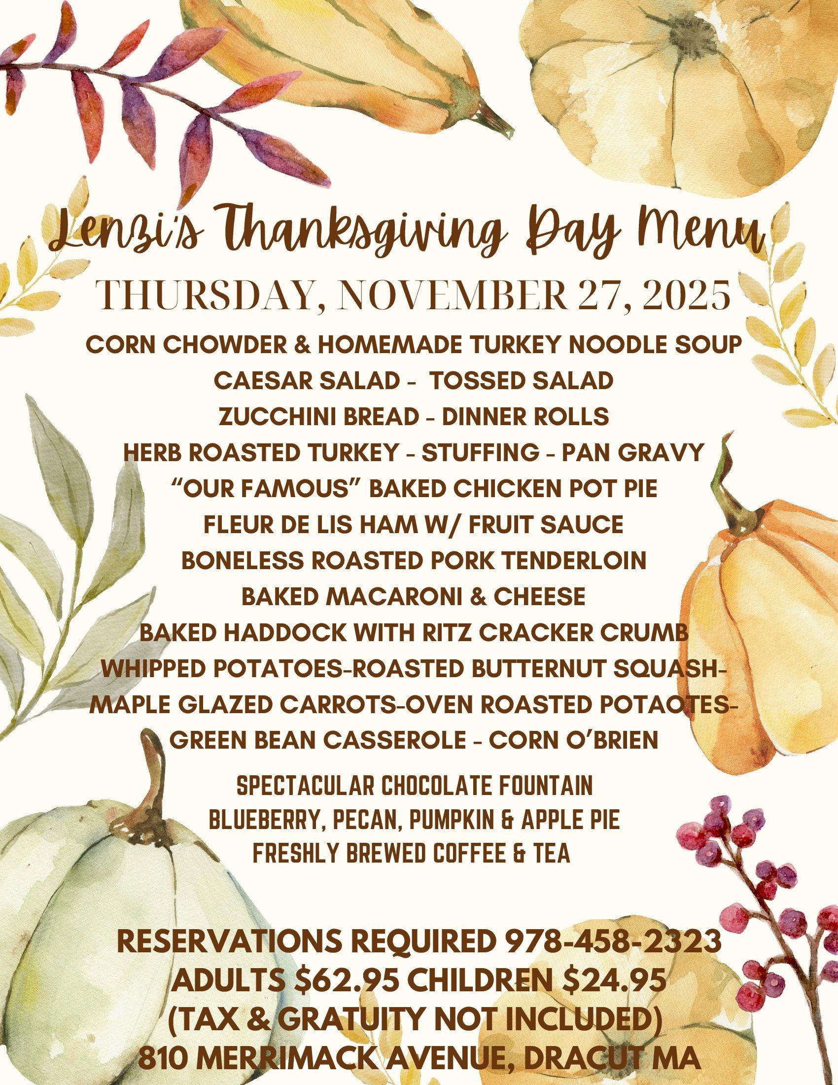 Thanksgiving Day Menu